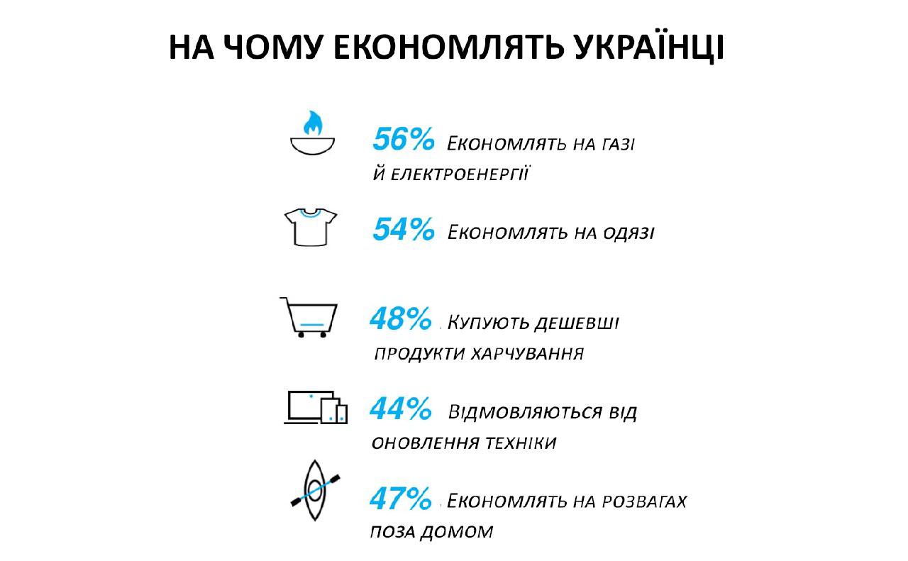 Що ж стосується спроб заощадити, то цим «грішать» не менше 70% всього населення України. Найбільше коштів намагаються зберегти на все тій же комуналці. На одязі, їжі, техніці та розвагах українці економлять дещо менше.